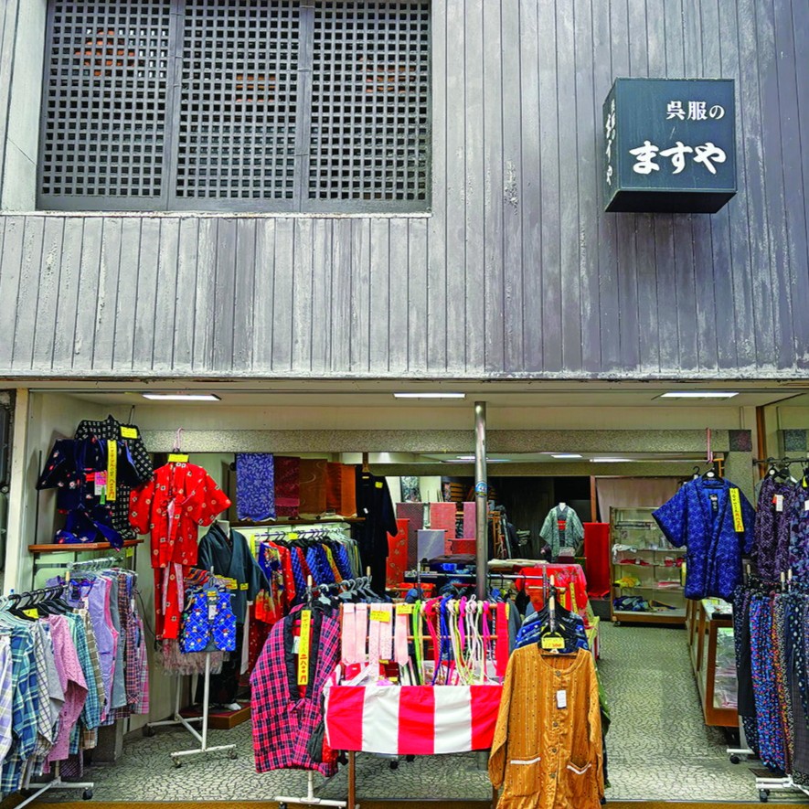 和装に関するご相談ならこちらへ。店頭には割烹着なども並びます。