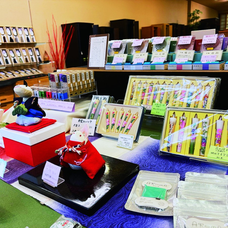 お仏壇にまつわることはなんでも相談できます。わからないことを丁寧に教えてくれると評判のお店。小さなお骨入れやプリザーブドフラワーの仏花に加え、かわいい和ロウソクやお香などの雑貨も。