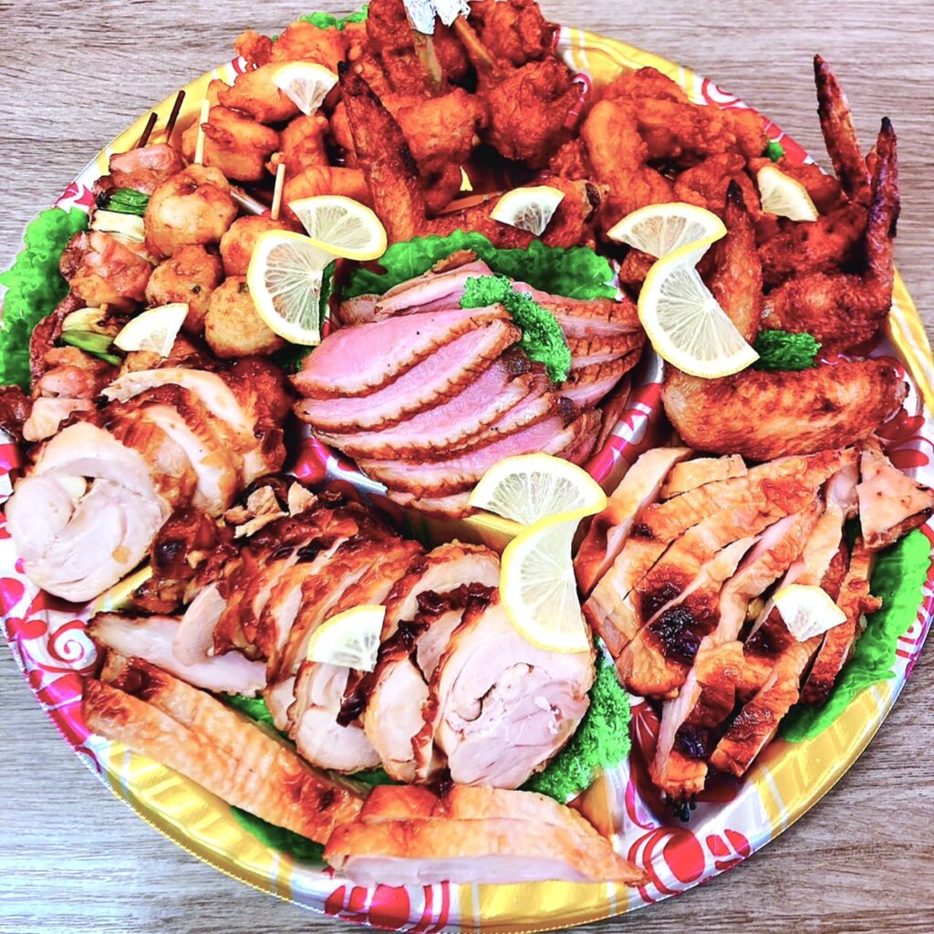 創業50年超えの老舗鶏肉店。新鮮な国産鶏にこだわり、お惣菜もいろいろ。お肉は全国発送も可能です。オーダーでオードブルも♪ うーん、おいしそう!