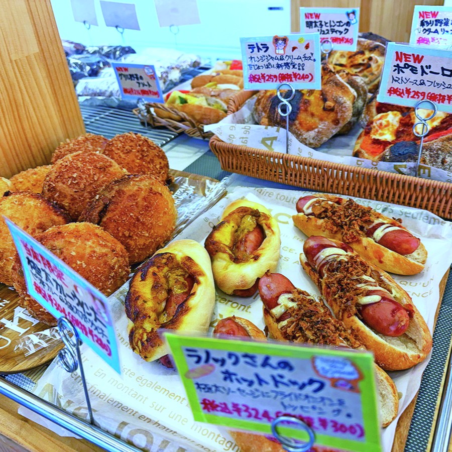漬物ドッグで話題になったパン屋さん。東のブランジェリー店、西の丸井パンminiがあり、使い勝手◎。